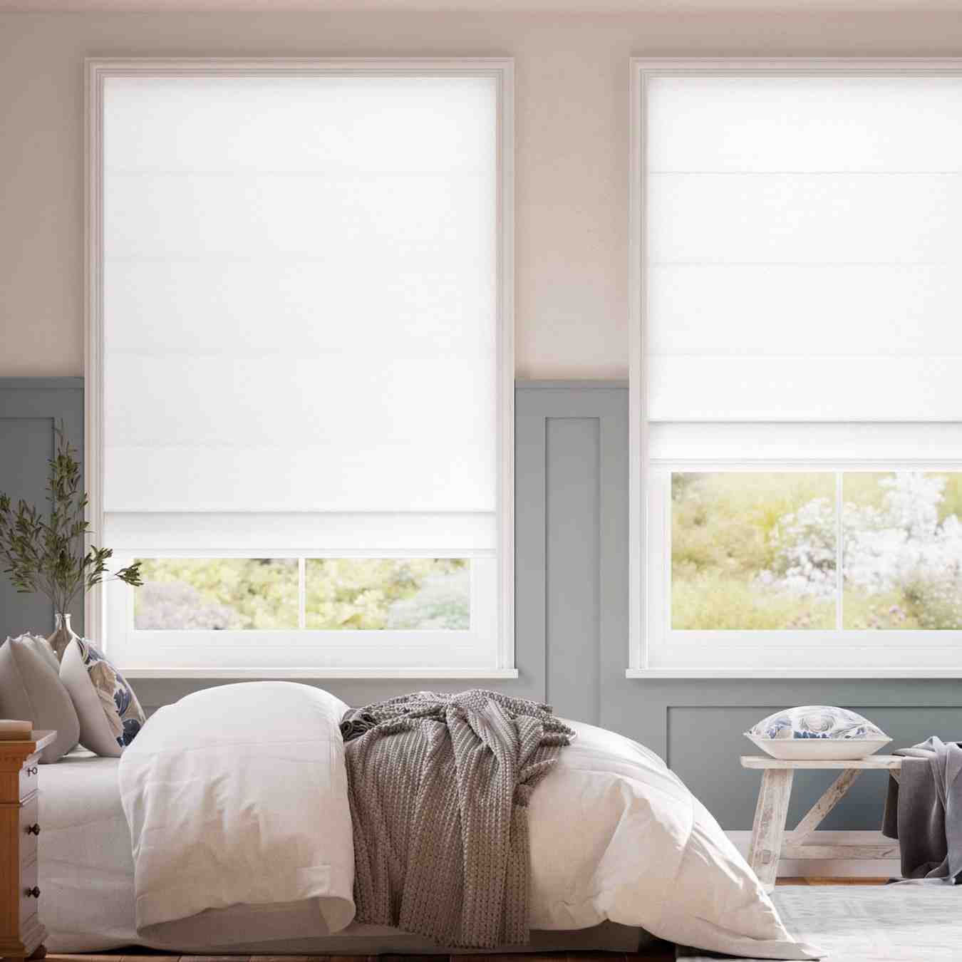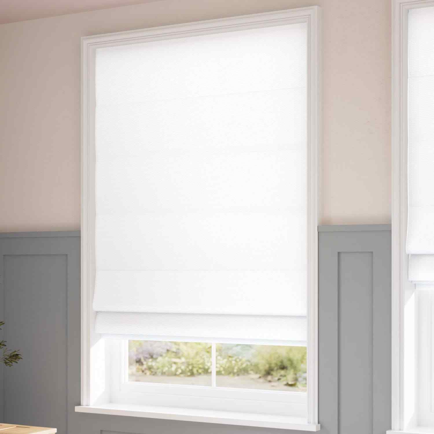 This Atticus white Roman blind print delivers a clean, crisp look with smooth operation. Its durable fabric provides privacy, light control, and a timeless, elegant finish for stylish interior spaces.