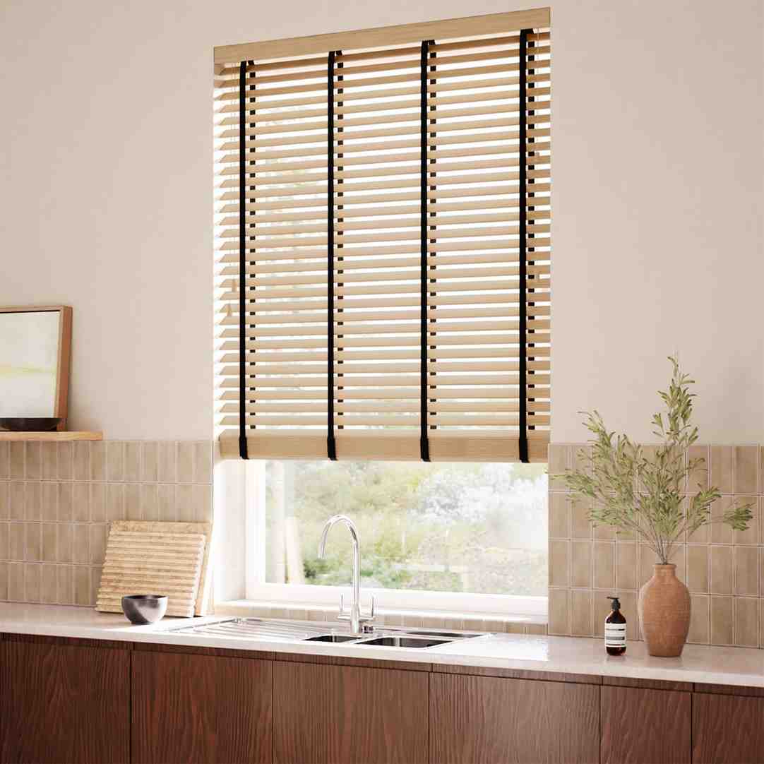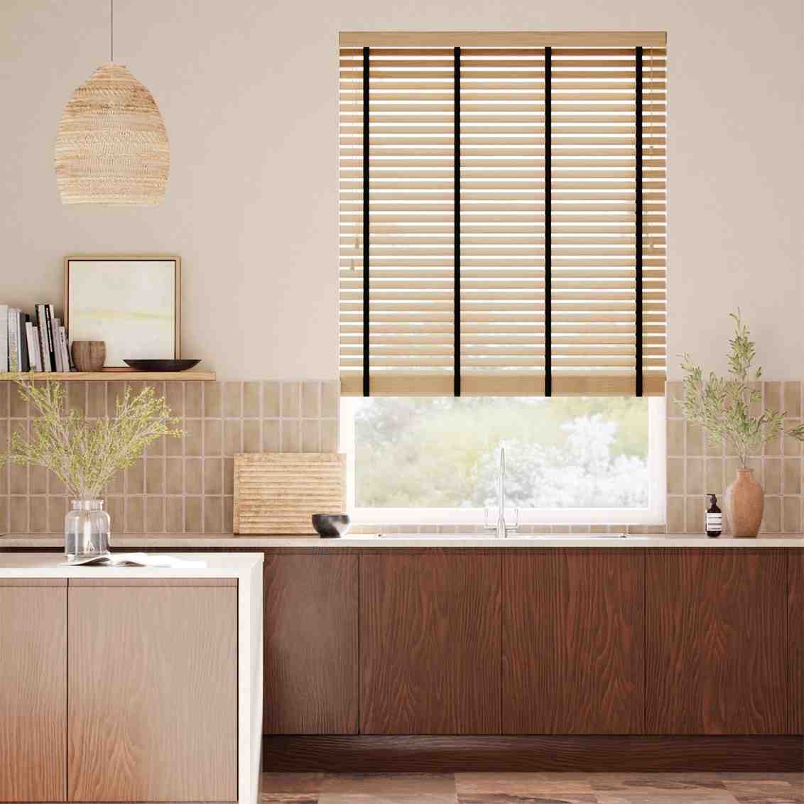 This autumn oak noir wooden blind print combines deep, warm tones with stylish texture. Its sturdy slats offer smooth light control, privacy, and a refined finish, perfect for cozy and elegant interiors.