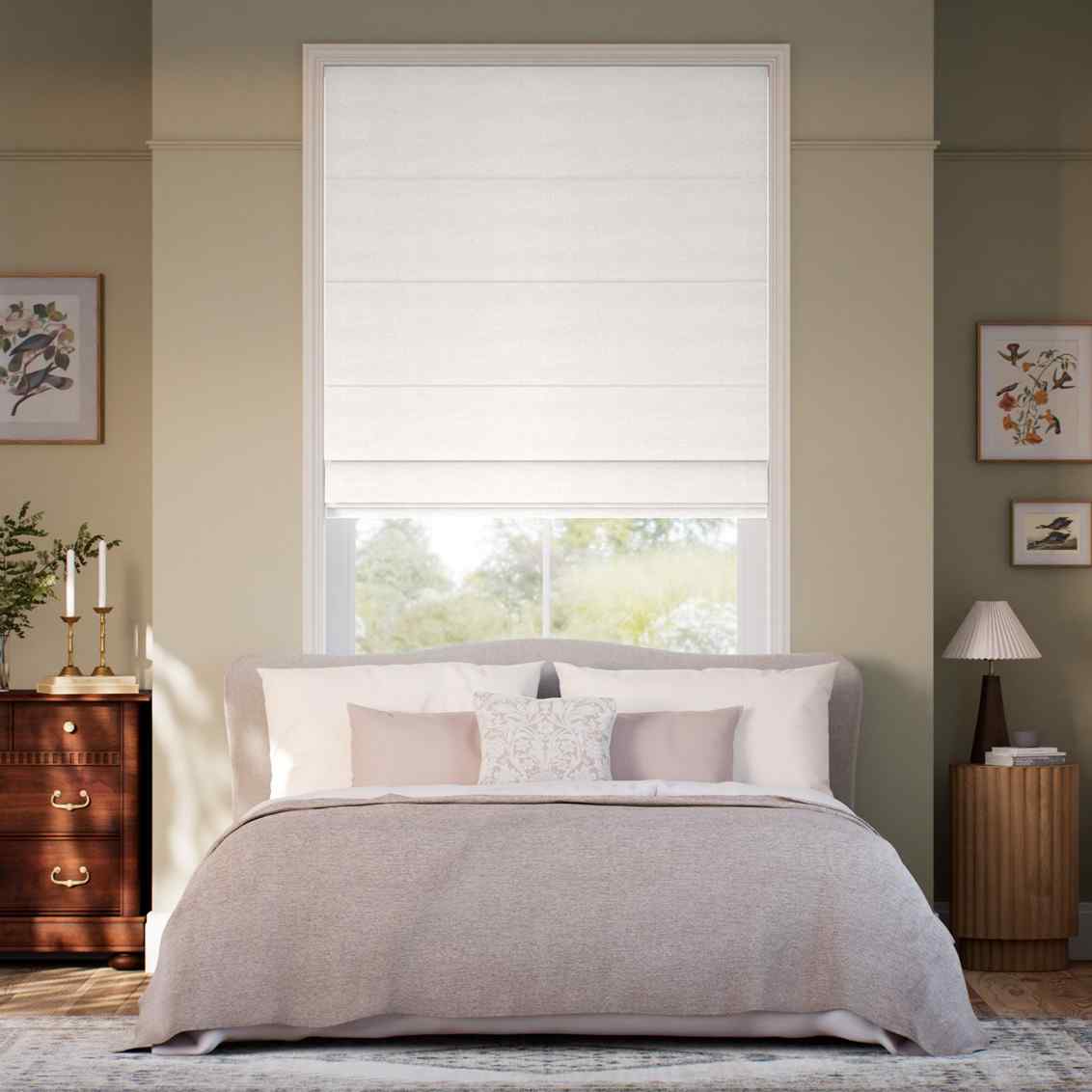This Ianthe porcelain Roman blind print offers soft, delicate tones with elegant texture. Its durable fabric provides smooth operation, privacy, and light control, creating a refined and stylish interior finish.