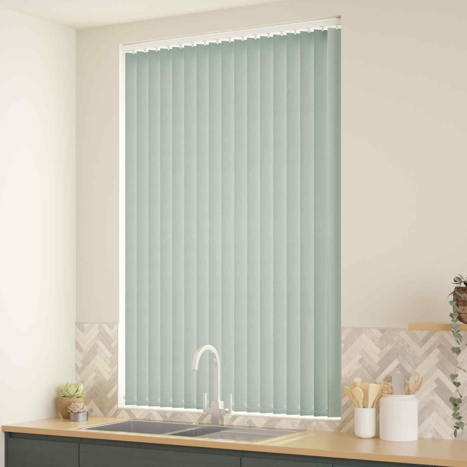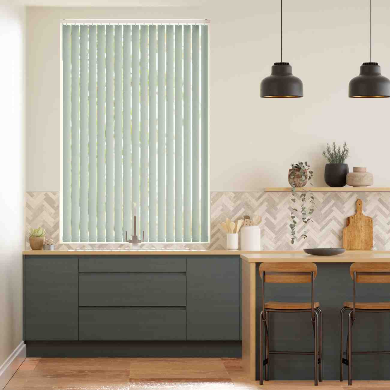 This pistachio blackout vertical blind print brings soft, fresh tones with full light blocking. Its durable vanes provide smooth control, privacy, and a modern, elegant finish for stylish interior spaces.